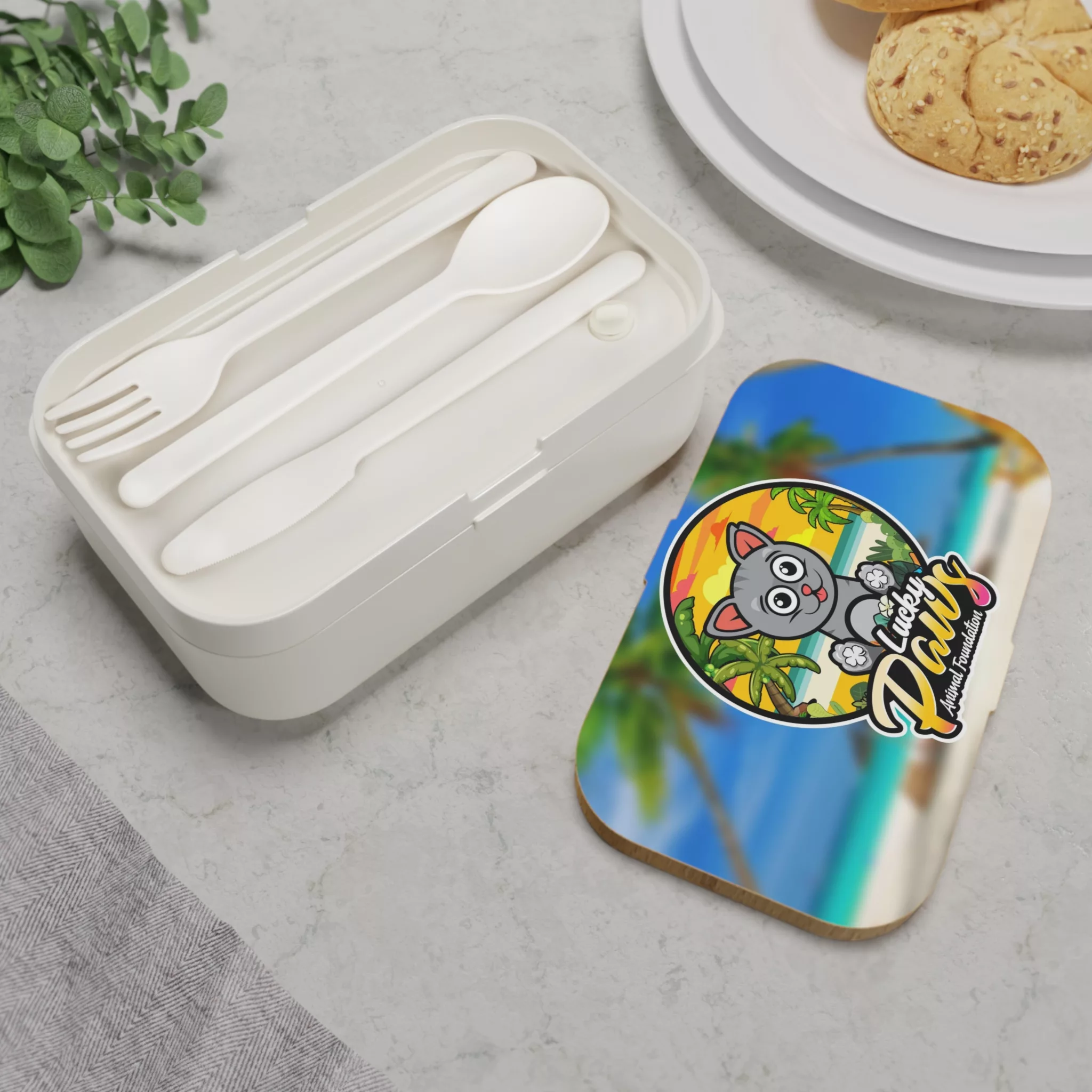 .: An elastic band and cutlery included